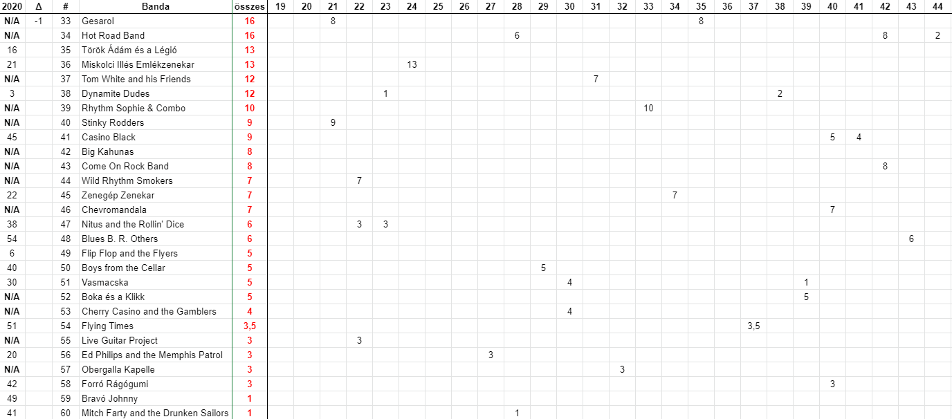 Más változás nem történt, a listát a 60 helyen a Mitch Farty and the Drunken Sailors zárja.