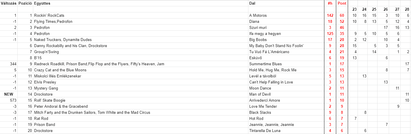 2021 Huszonnyolcadik hét, Top 20