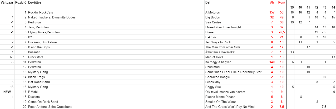 2021 Negyvennegyedik hét, Top 20