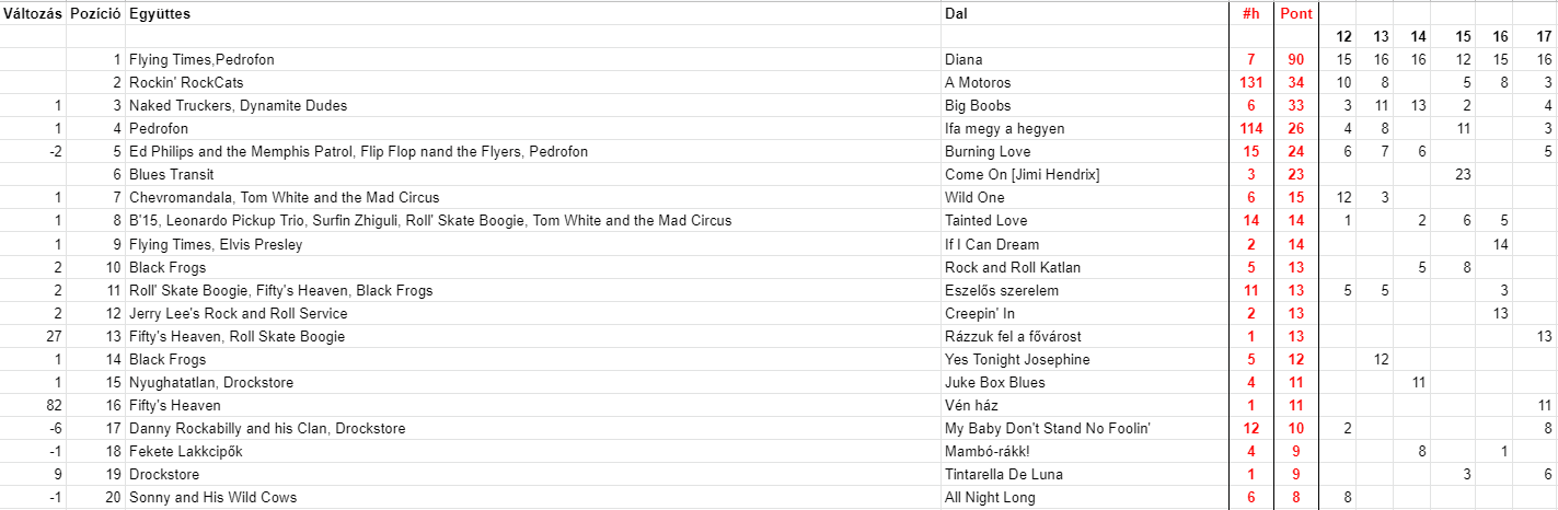2021 Tizenhetedik hét, Top 20