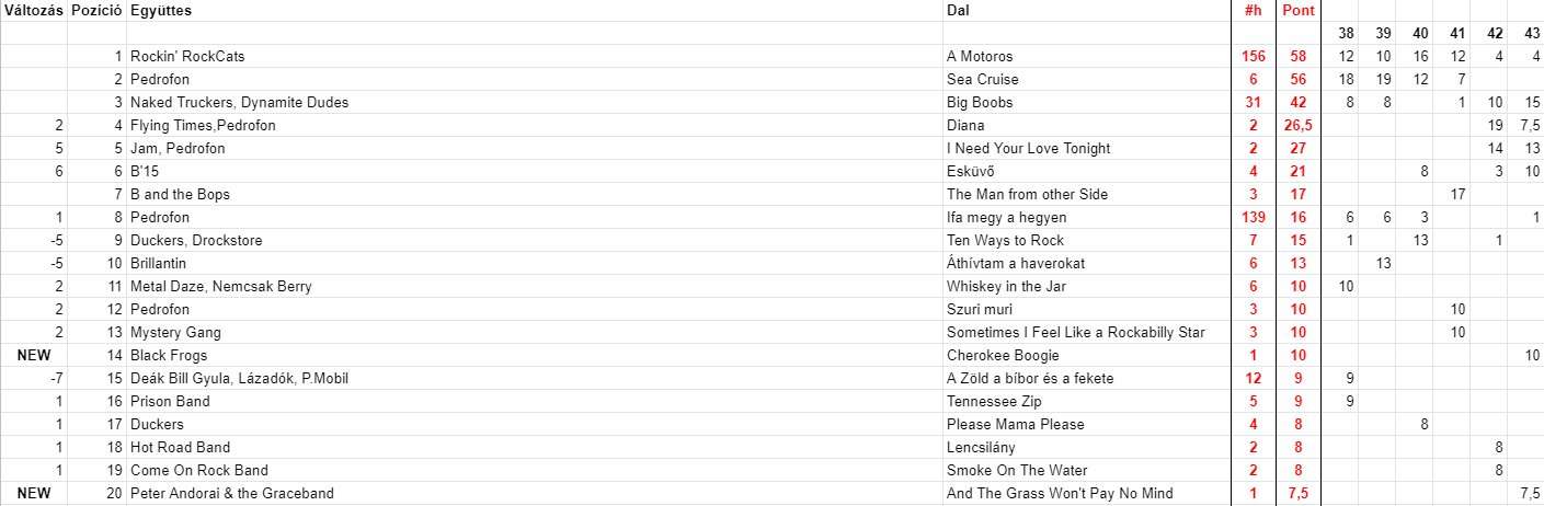 2021 Negyvenharmadik hét, Top 20