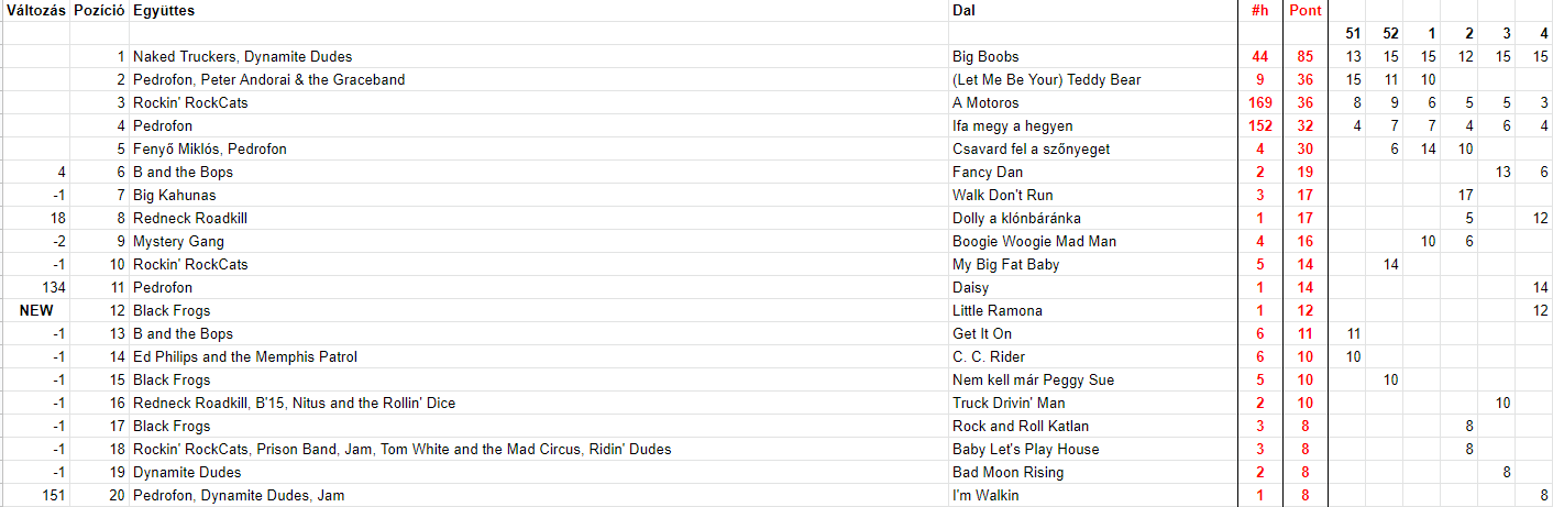 2022 Negyedik hét, Top 20