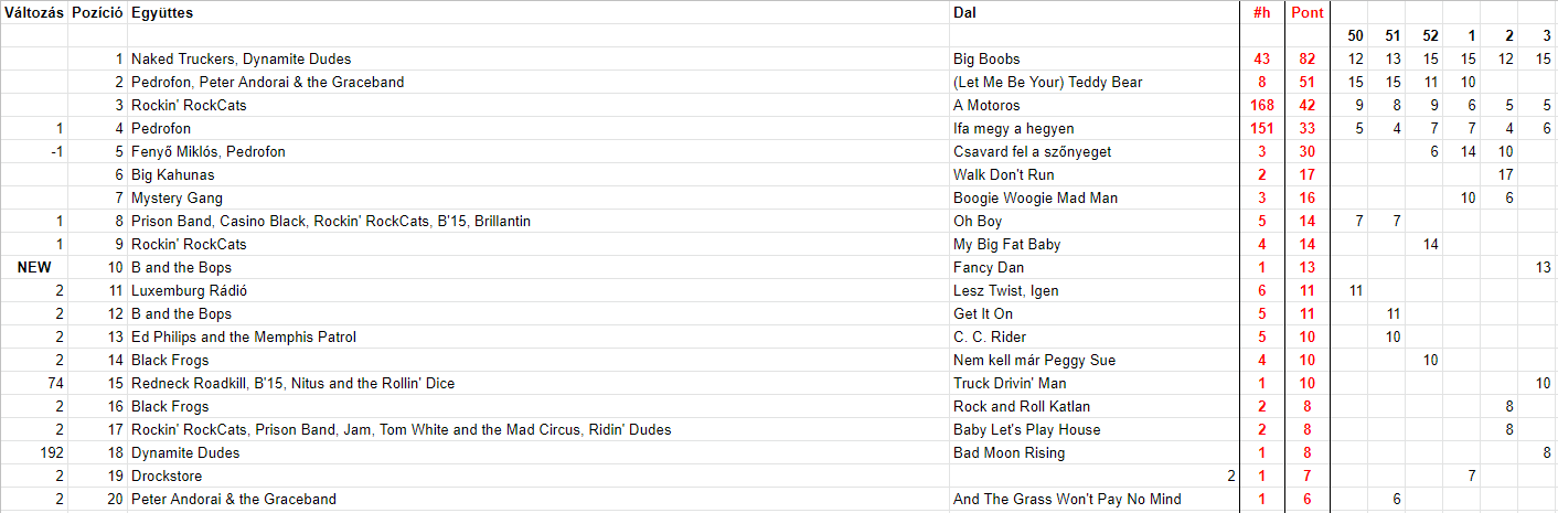 2022 Harmadik hét, Top 20