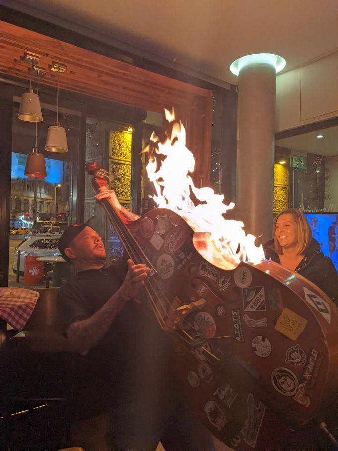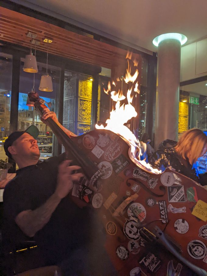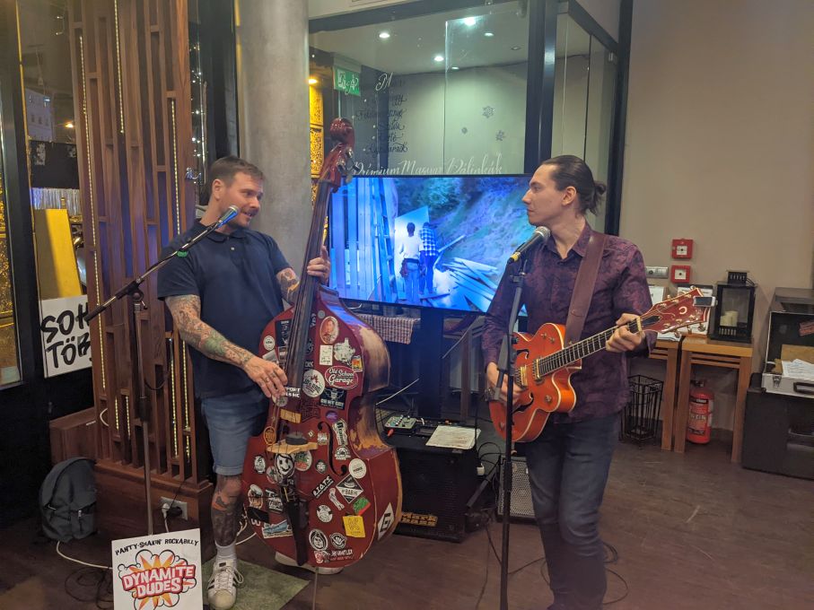 Úgy adódott, hogy lett egy szabad péntek estém múlt héten. Más talán moziba ment volna, de én ehelyett két koncertet is meglátogattam. Az első a sorban a Dynamite Dudes fellépése volt a Deák térhez közeli Ucca Bárban. Korán érkeztem, nem indult be az ájszaka, de a fiúk mindent beleadva szórakoztatták az egyre gyarapodó közönséget. Ezúttal Berta Dani, azaz Danny Rockabilly szolgáltata a gitárjátékot Misi nagybőgője mellett.