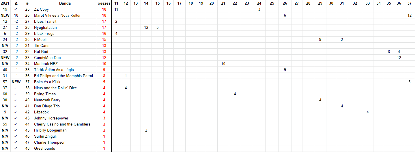"Mexikóban" is kapott pontokat egy-két együttes. A 24. Sonny and his Wild Cows kilenc helyet, a 26. Marót Viki és a Nova Kultúr tíz helyet javított.