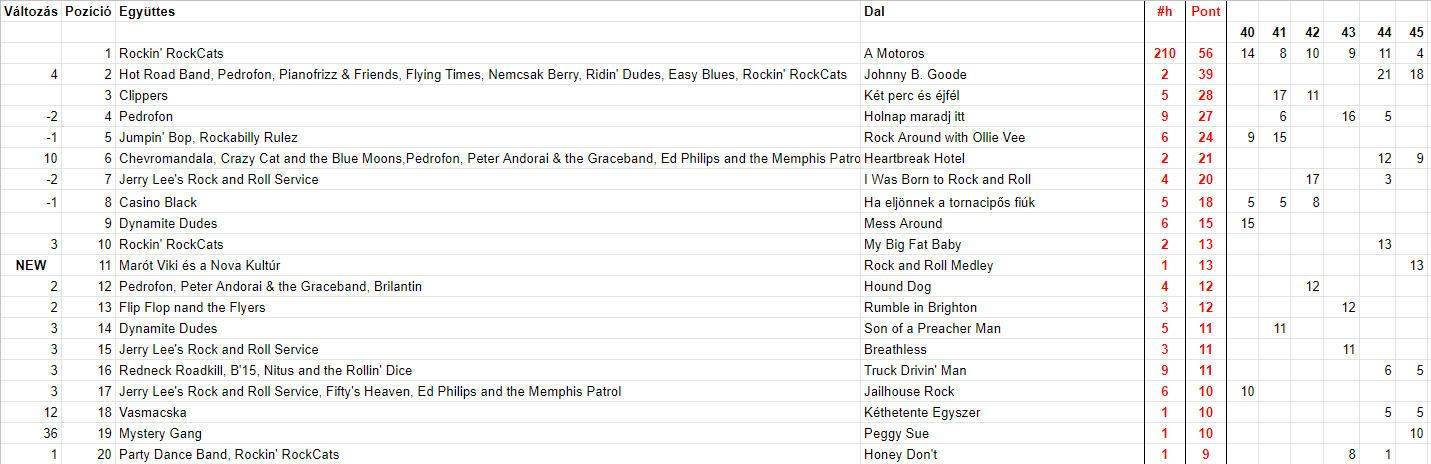2022 Negyvenötödik hét, Top 20