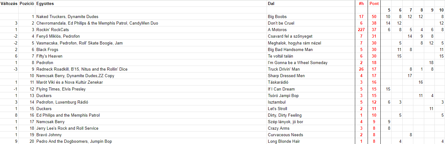 2023 Tizedik hét, Top 20