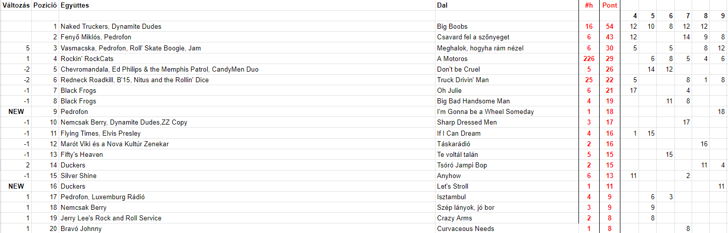 2023 Kilencedik hét, Top 20