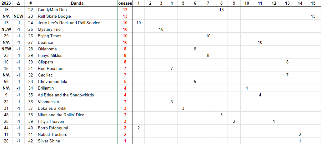 Bekerült a legjobb 16 közé a Rockabilly Rulez. A 17.-ről a 14. helyre léptek előre.