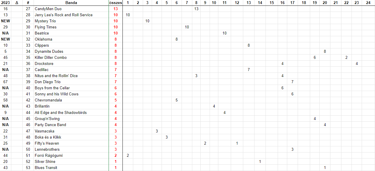 "Mexikóban", a lista második felében a 20. Hungária tudott javítani öt helyet. Eközben a 22. Red Roosters meg tudta őrizni pozícióját, ami külön erénynek számít.