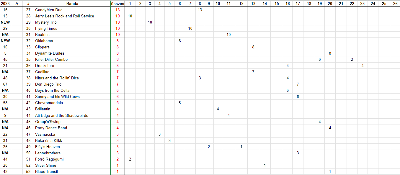 Egy-egy helyet javított a 12.-13. Redneck Roadkill és a spanyol Charlie Hightone and the Rock It's, akik ráadásul pontegyenlőségben állnak.