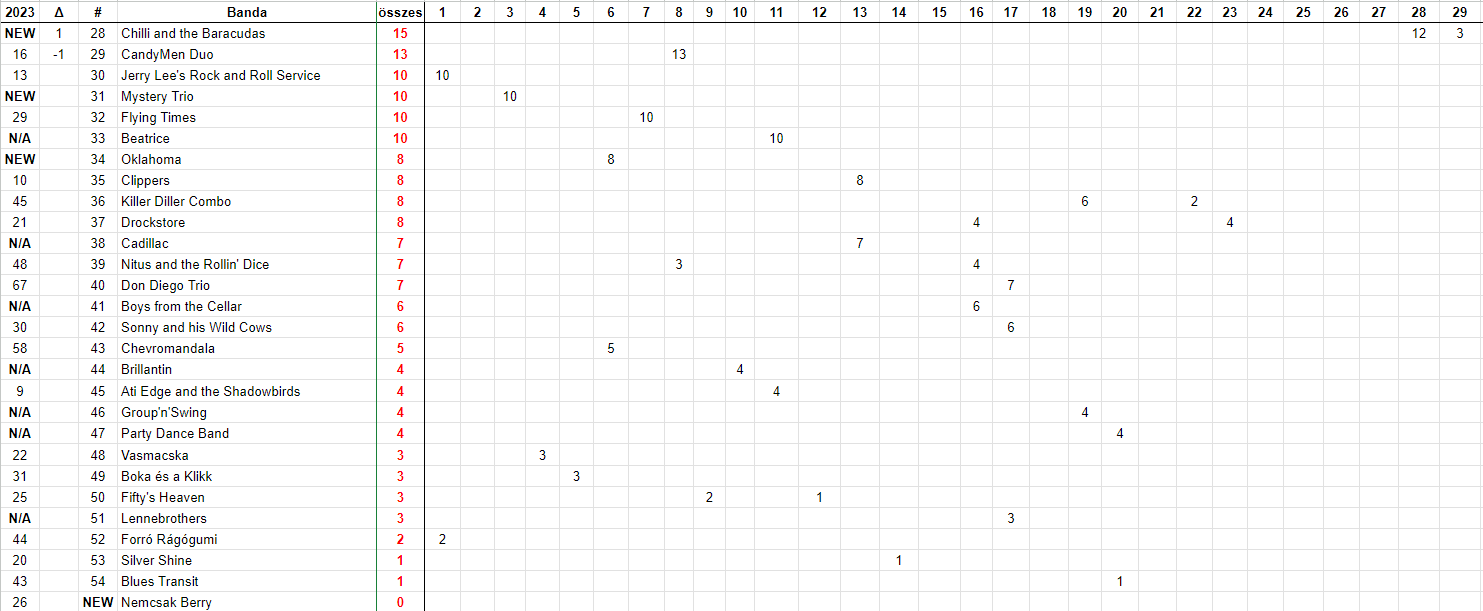 Mögöttük a Rockin'RockCats és a Pedrofon ismét helyet cseréltek.