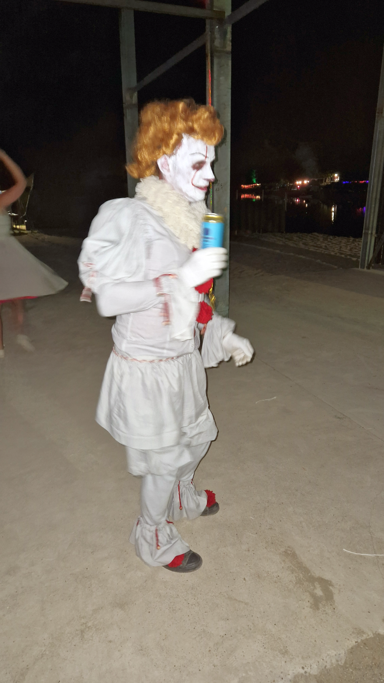 A koncerten ilyen félelmetes, söröző bohócok is jelen voltak.