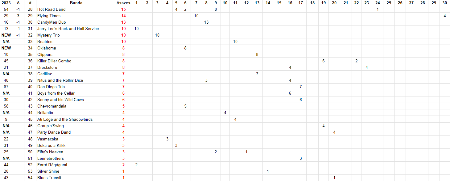Az ötödik Lantos Gábor & the King's Men helyet cserélt a Duckers-el, akik nemrég még a harmadikok voltak.