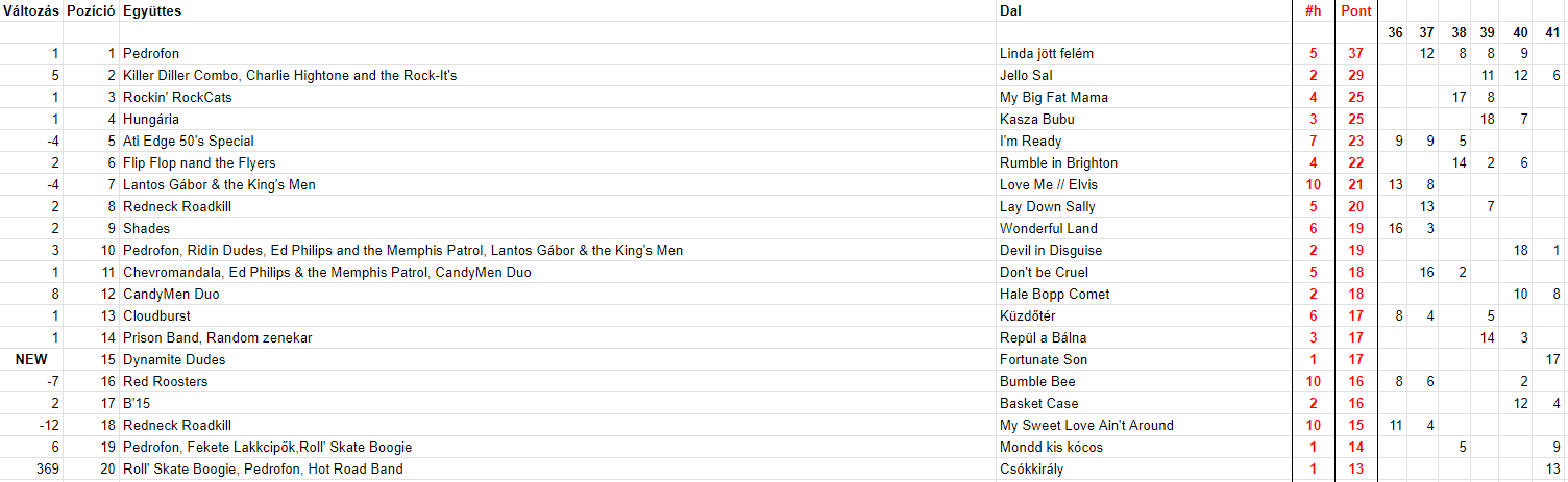 2024 Negyvenegyedik hét, Top 20
