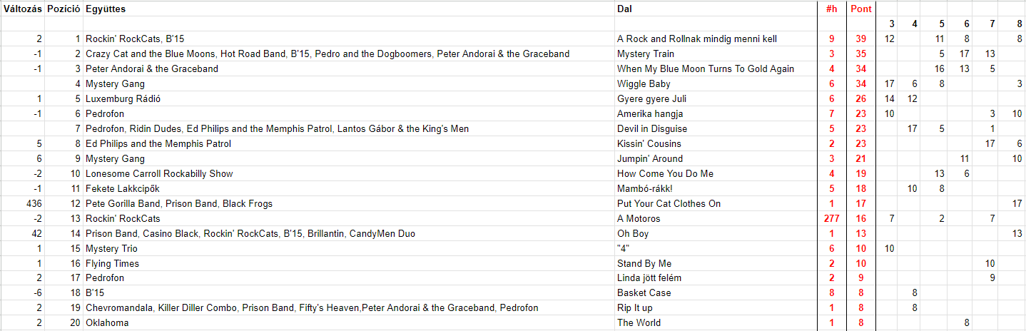 2024 Nyolcadik hét, Top 20