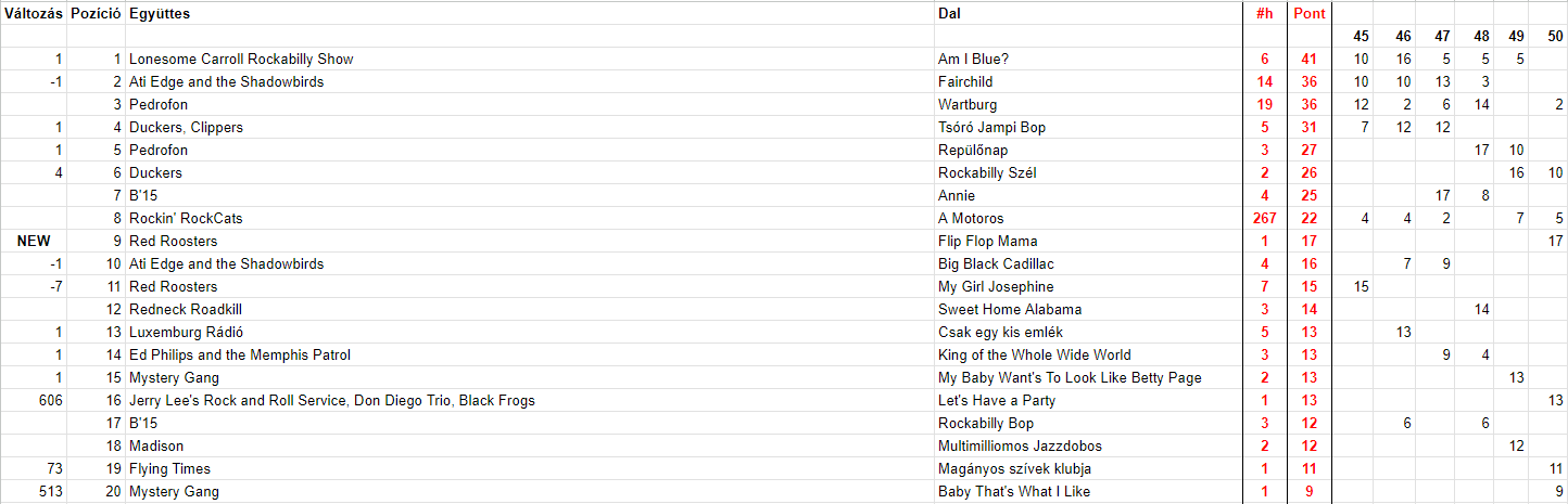 2023 Ötvenedik hét, Top 20