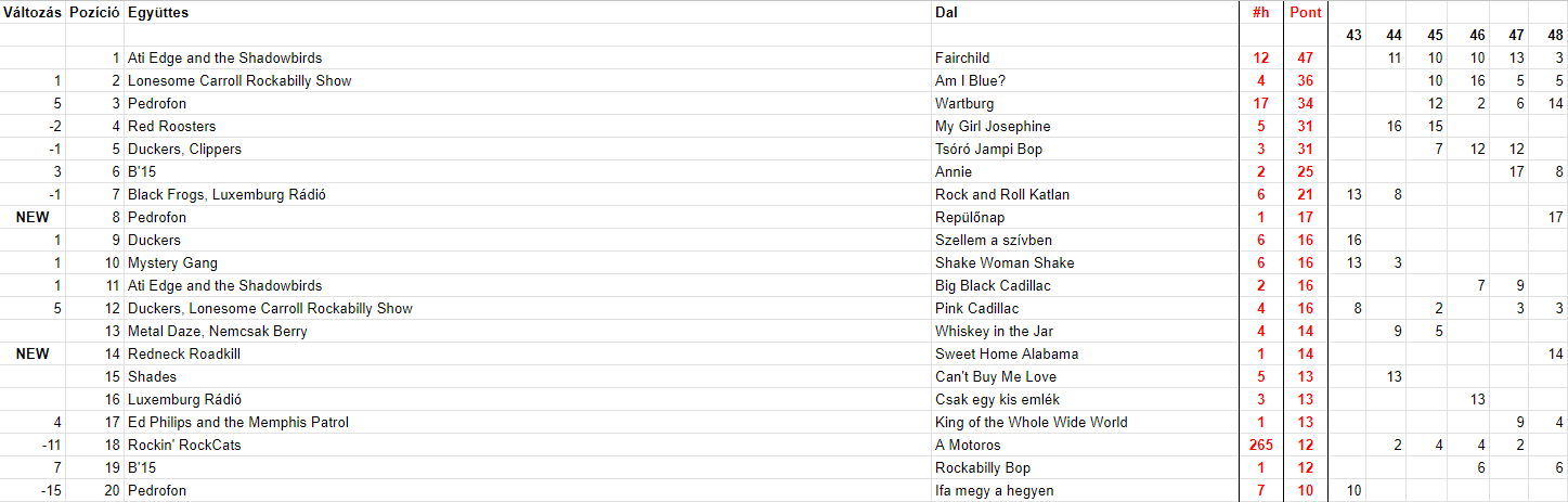 2023 Negyvennyolcadik hét, Top 20