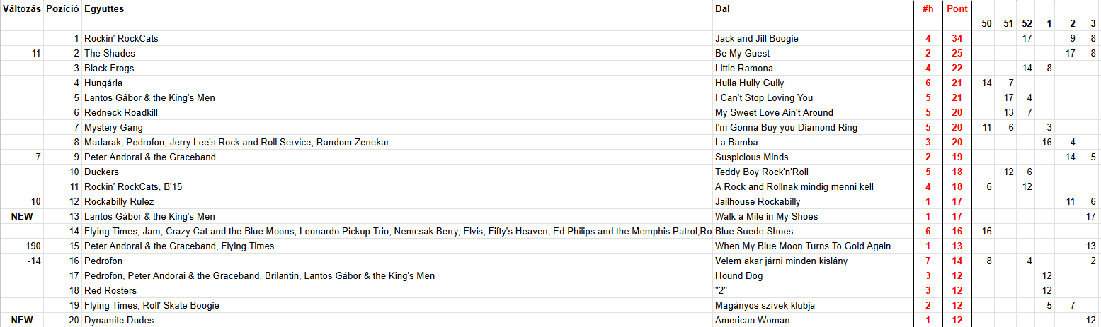 2025 Harmadik hét, Top 20