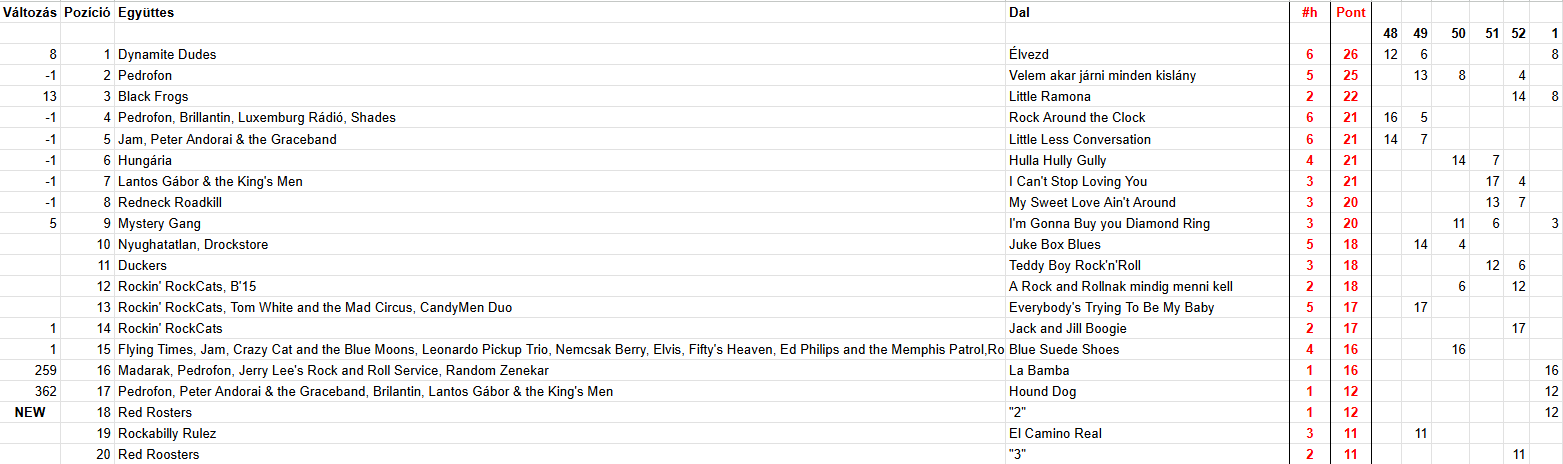 2025 Első hét, Top 20