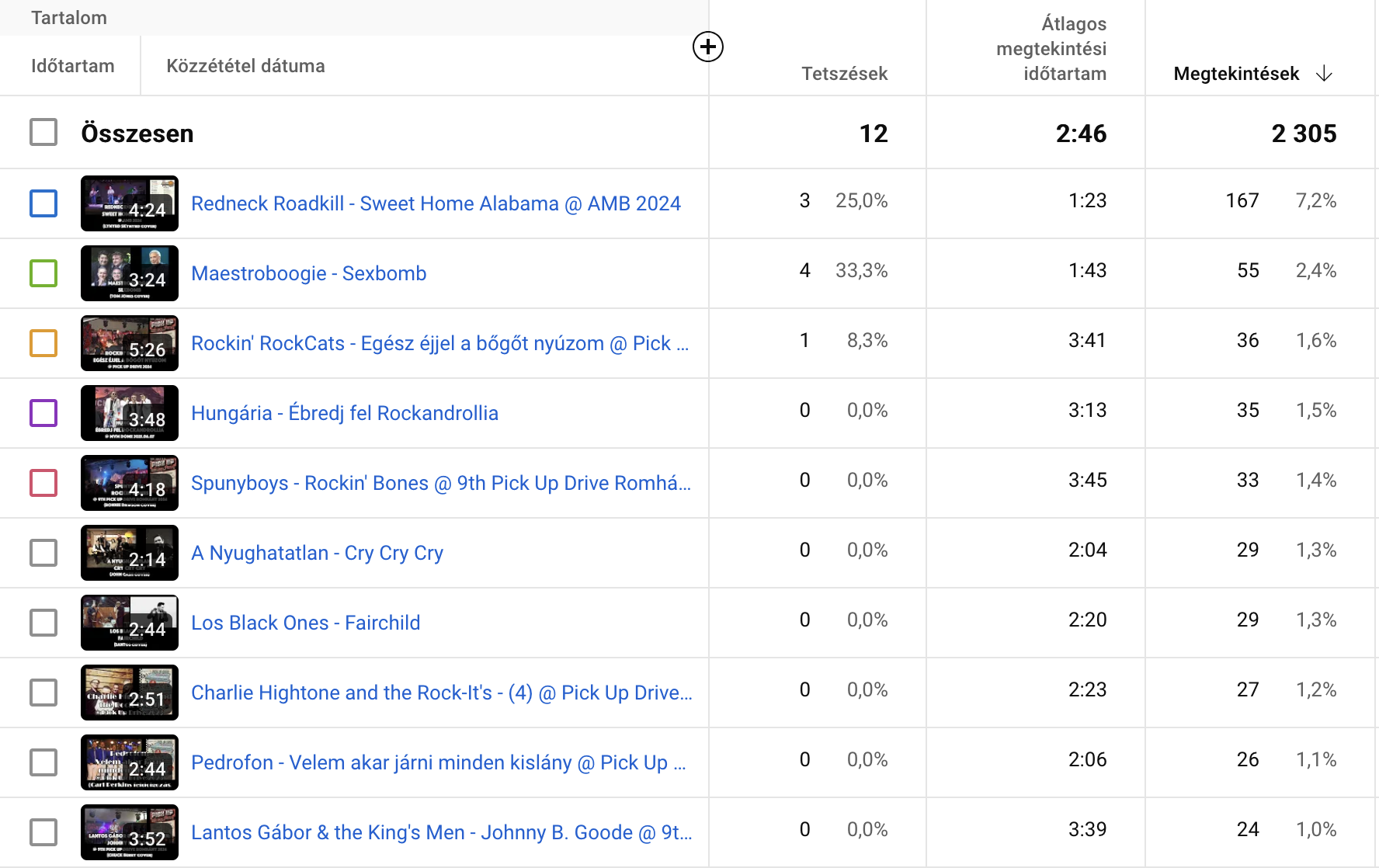 A tizedik helyen Lantos Gábor & the King's Men zárja a listát. A Johnny B. Goode a 24-es Pick Up Drive-on került rögzítésre.