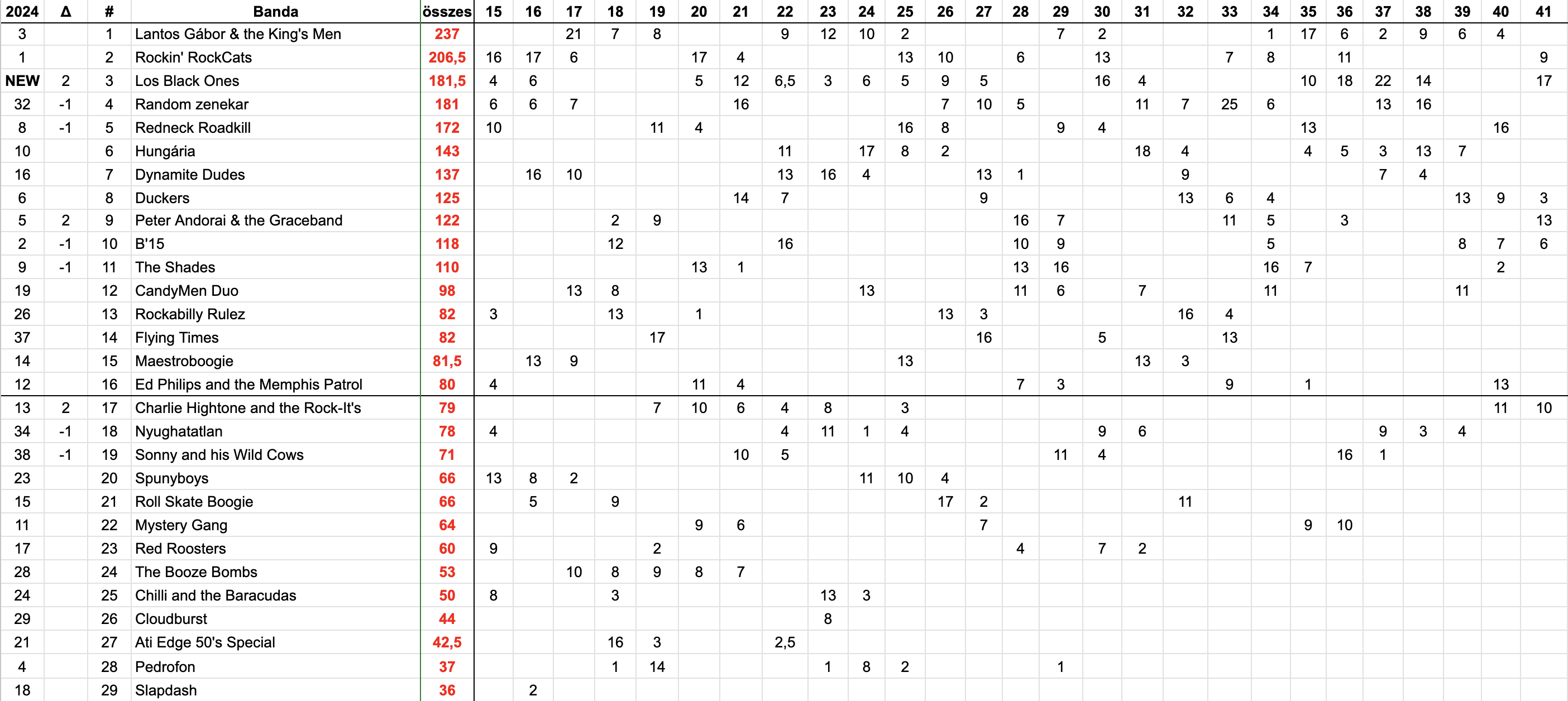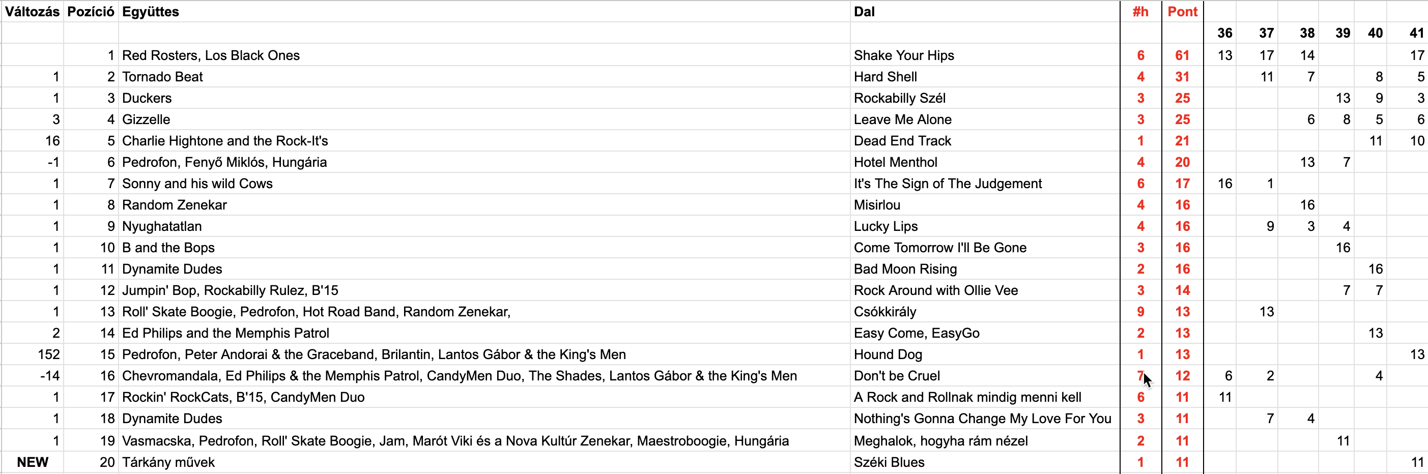 2025 Negyvenegyedik hét, Top 20