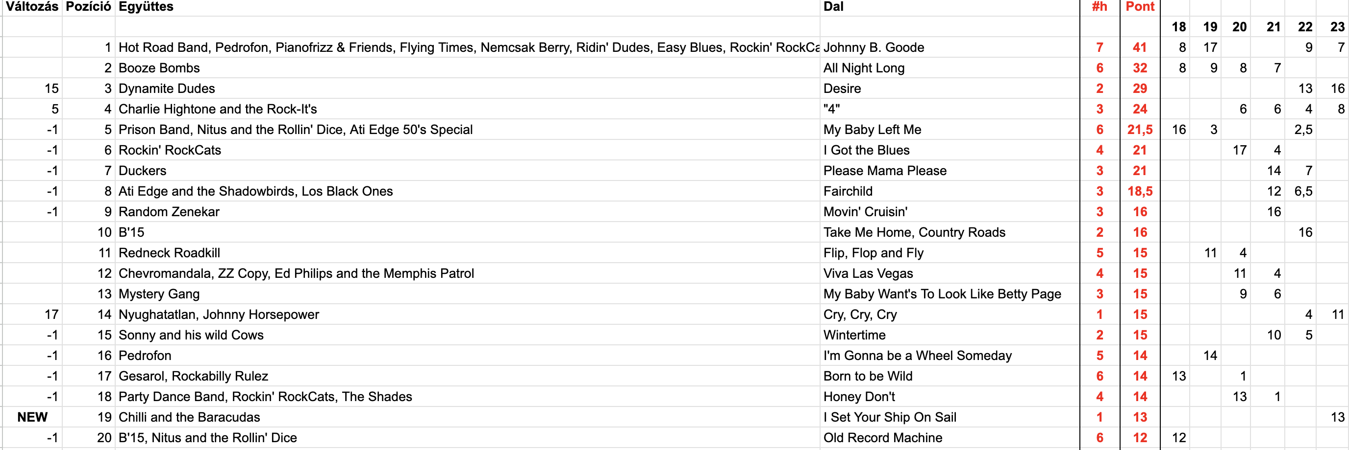 2025 Huszonharmadik hét, Top 20