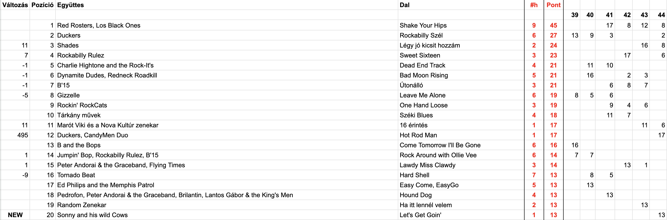 2025 Negyvennegyedik hét, Top 20