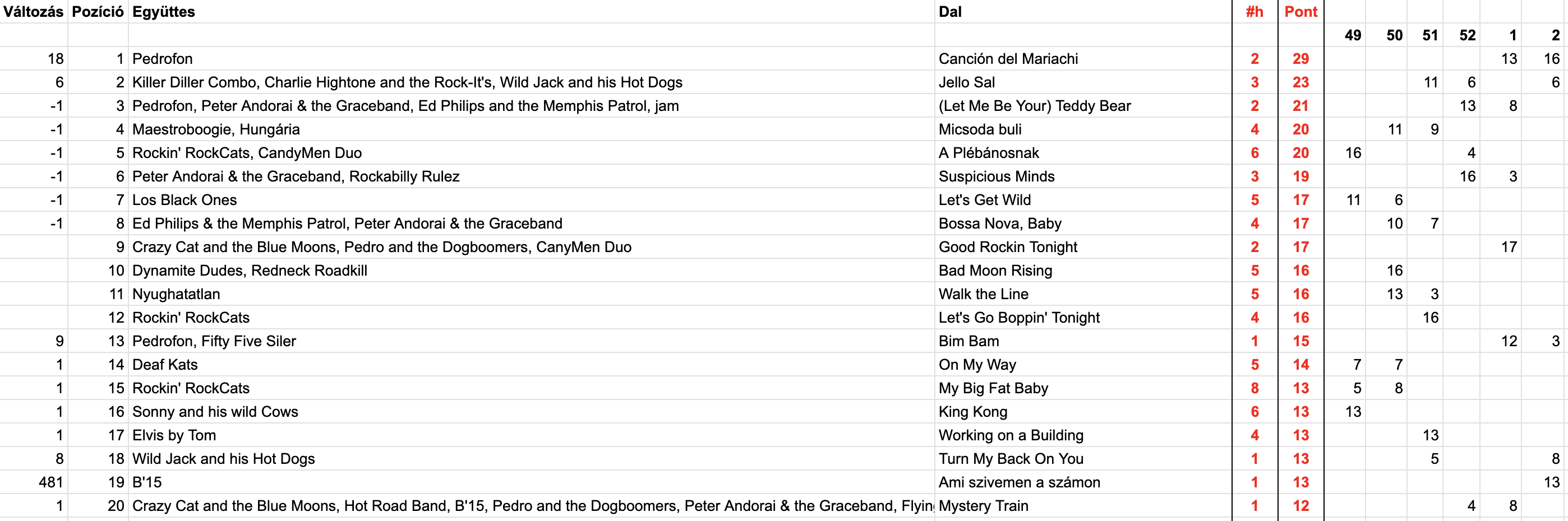 2026 Második hét, Top 20